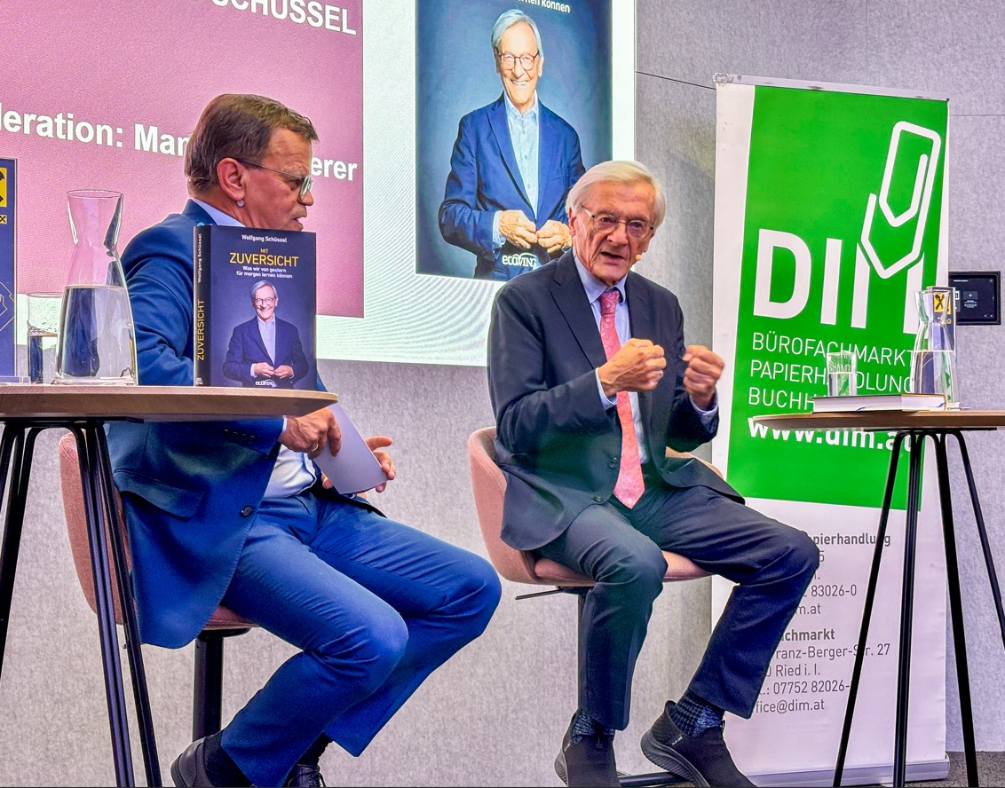 Unser Bundeskanzler a.D Dr. Wolfgang Schüsselpräsentatierte am 6. Oktober in der Raiffeisenbank Ried sein neues Buch „Mit Zuversicht – was wir von gestern für morgen lernen können.